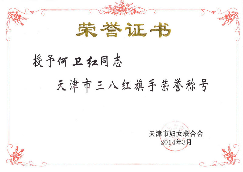 近日,天津市妇女联合会下发《关于表彰2013年度天津市三八红旗手标兵、三八红旗手(集体)和天津市妇女岗位建功先进集体、先进个人的决定》,中材装备集团研发中心副主任、技术质保部部长何卫红被授予“天津市三八红旗手”荣誉称号。