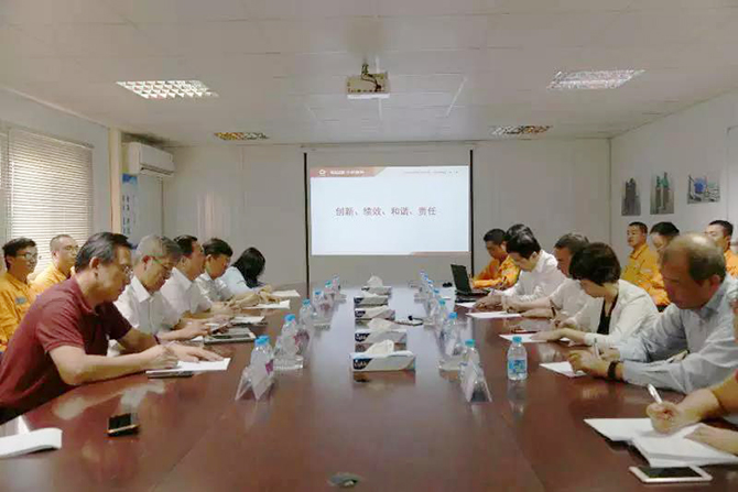 郝鹏一行深入埃及GOE Beni Suef项目现场,实地调研世界规模最大的水泥生产线集群,详细了解项目建设、生产运营管理、一线员工学习、工作和生活等方面的情况,并听取了有关国际化经营和海外党建等工作情况的汇报。